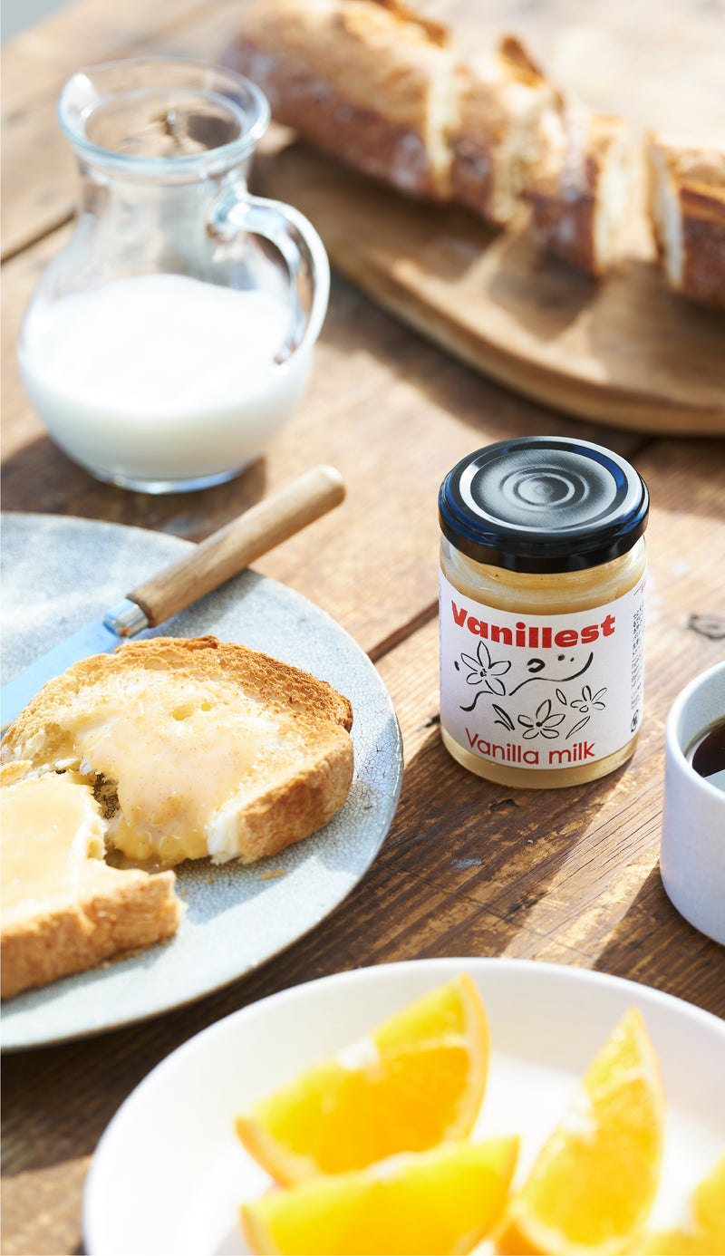 The rich aroma of vanilla brings happiness, and we want to bring this to the everyday breakfast table. Spread it on toast. Add it to hot milk or ice cream. Enjoy the genuine aroma of real vanilla.